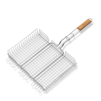 Размер: 40х30 см. Конструкция решетки обеспечивает устойчивое положение на мангале. Антипригарное покрытие, не дает возможности прилипать к прутьям. Удобная ручка помогает легко переворачивать решетку, не обжигая рук. Регулируемая высота решетки, удобна для использования различных продуктов