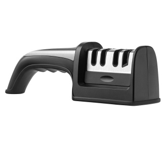 Точило для ножей — незаменимый предмет на кухне, с помощью которого можно обновить заточку лезвий. Точило изготовлено из прочного пластика, который не скользит, а небольшой размер позволяет держать точило всегда под рукой. Удобная ручка хорошо фиксируется в руке и позволяет быстро наточить даже большой нож.