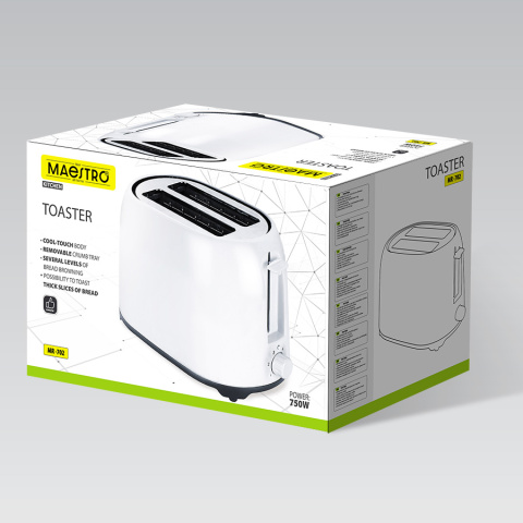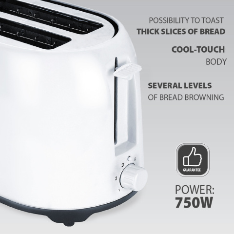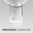 Мощность: 220-240 В, ~50 Гц, 750 Вт. Возможность поджаривания толстых ломтиков хлеба. Открывающийся поддон для крошек. Идеален для домашнего использования.Несколько уровней поджарки хлеба.Компактный дизайн для удобного хранения.